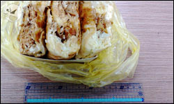 至於重量,我必須很努力地夾緊手指,才能讓其中一塊巍顫顫地被固定在那兩根脆弱的竹棒子之間。吃個蛋餅竟然讓手指痠得半死不說,筷子最後還有彎掉的跡象,這是何等沉重的蛋餅啊……