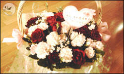 花籃是正午時分送來的,讓我有點冏,因為我本來是希望我出門後再送來說~不過重點還是:阿母,母親節快樂喔!