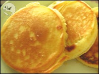熱蛋糕、或說是鬆餅,上週的週記〈偶遇與熱蛋糕材料採購〉已經提及我為了想製作這玩意而去收集材料的過程,這次就是付諸實現了!過程沒什麼值得大書特書之處,就是把牛奶和蛋倒入熱蛋糕粉後一直攪一直攪,把它們攪成漿後倒在平底鍋上煎熟就是成品了。製作這玩意,過程遠比成品有趣許多,很快地,盤子裡就堆起了已經不大想吃、卻因為欲罷不能而一直煎的熱蛋糕。猛然清醒過來,才趕快把剩下的材料收一收準備改天繼續玩,然後努力解決眼前那座繁殖得很成功的熱蛋糕山(冏)。