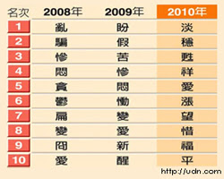 比較前2屆的結果──2008年的「亂」、2009年的「盼」,「淡」都稱不上是什麼激烈的表達,對我而言,今年著實也符合這個字所表達的意涵,在大起大伏後,淡淡地過日子。不只是「淡」,今年前10名的漢字感覺真是超祥和的,是不是代表了民心望安的期待呢?雖不得而知,不過樂見其成。