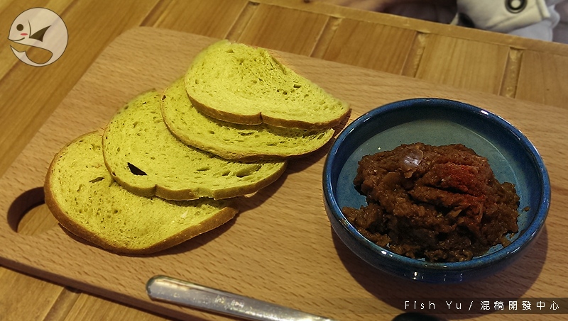 脆片 + 茄子茴香醬,配醬看起來吃起來都很像醃漬物,沒有特別的感想。