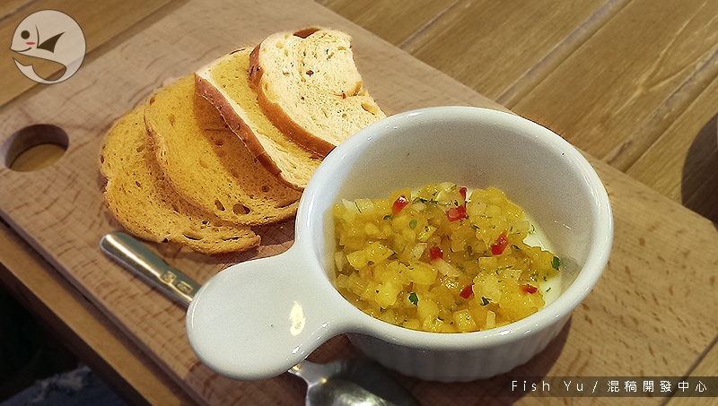 脆片 + 鳳梨莎莎醬,脆片之硬我就不再說了,但這個醬倒是不錯吃。