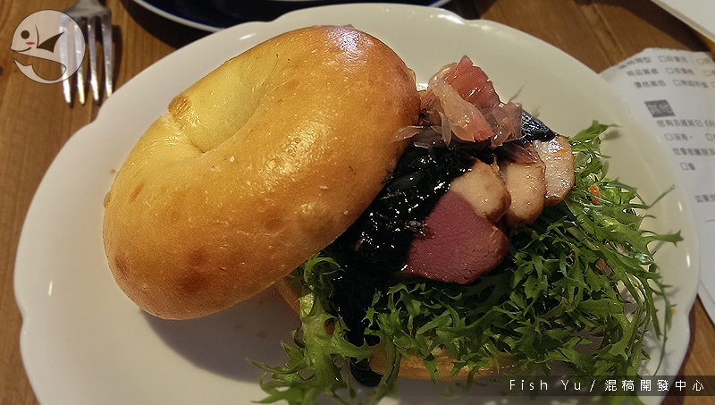 這鴨胸沒給我什麼特別的記憶,就是個現成的煙燻鴨胸肉,我倒是用了很多力氣去嚼那個堅韌的貝果。