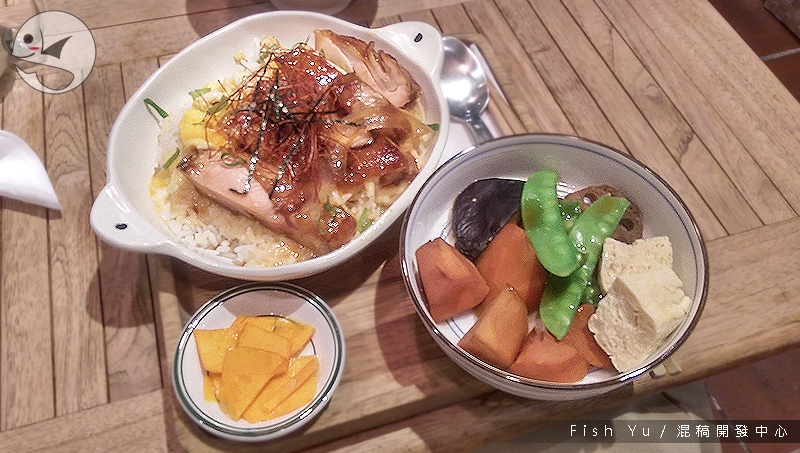 豬里肌本體不錯吃,底下還藏有菠菜。