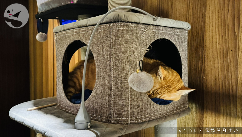 之後再訪,門口多了個貓跳台和一隻睡覺中的貓,「十隻橘貓九隻胖」的道理在這橘貓身上得到了驗證(笑)。