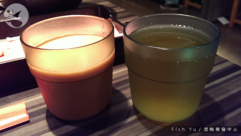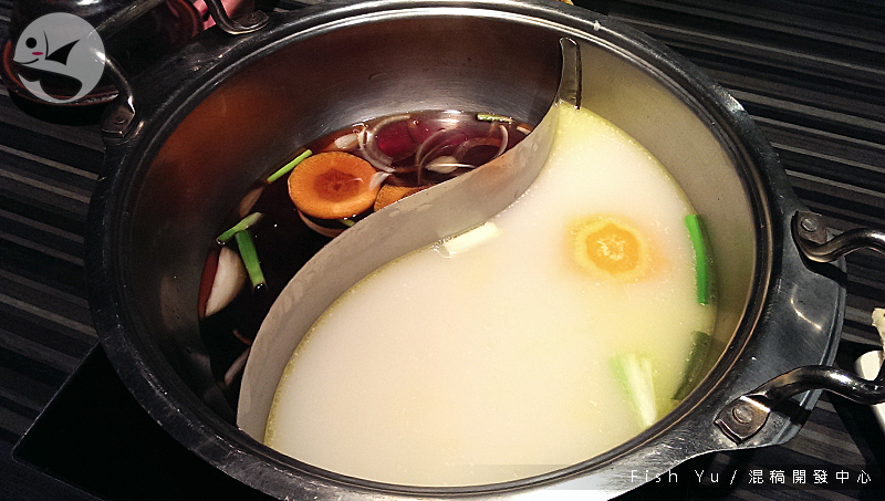 一邊是壽喜鍋,一邊是北海道風味豚骨鍋,不過味道都很一般。
