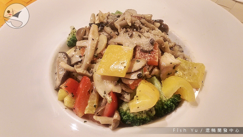 有滿滿的菇類和甜椒。