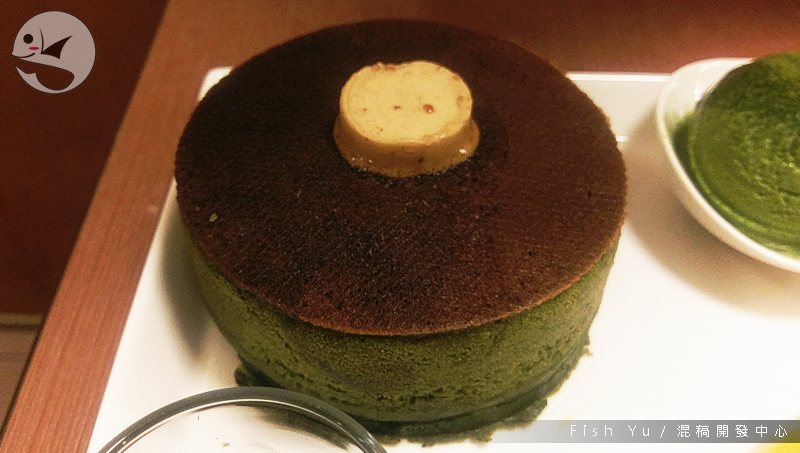 真心不騙,約3公分厚度不誇張的抹茶厚鬆餅!上面還放著一小塊奶油。根據櫃檯的說法,光等這個上菜就要30分鐘。