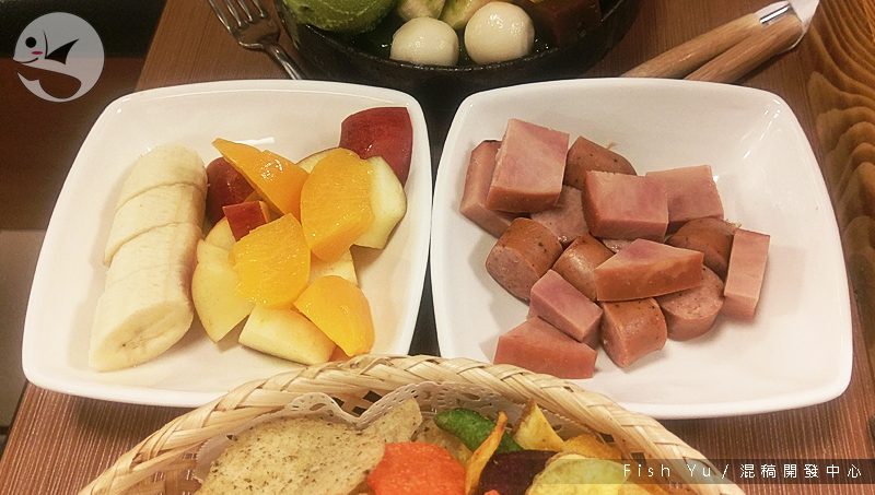 可以用來沾食抹茶起司的餡料有水果與熱狗,可以吃到甜與鹹的味道。