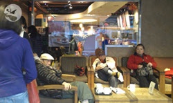 雖然我只有要撐很難熬的課時才會去星巴克買咖啡(經過多次實驗證明,我喝星巴克的咖啡真的比較難睡),但買1送1畢竟是少有的機會,星巴克又是貴鬆鬆到太常消費會很痛的玩意,所以有特價的機會我當然不會放過啦。而從店外那穿出騎樓、排到人行道的人龍來判斷,只能說,眾人所見略同啊。