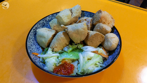 旁邊的湯汁並不是唯一的味道來源,豆腐本身就已經吸飽了湯汁,相當入味,好吃自然不在話下;至於湯汁味濃而不油,配上九層塔、薑絲與毛豆仁的提味,絕對是來這裡不能錯過的料理。後來吃過辣的版本,就只是依辣度(微辣/小辣/中辣)加入不等的辣油而已,也是挺夠味,不過真心推薦吃一次原汁原味的好味道。