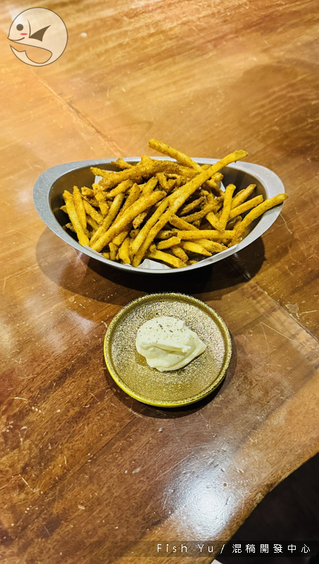 我本來對薯條興趣缺缺,細薯除外,是以我一聽到是細薯就秒點(笑)。薯條上裹滿店家自調的咖哩粉,若覺得膩,還可搭配解膩的酸奶油,我超喜歡這個奶味濃厚的酸奶油。