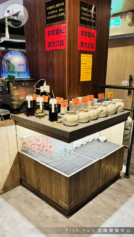 醬料與餐具自助區,基本該有的醬料和配料一應俱全。