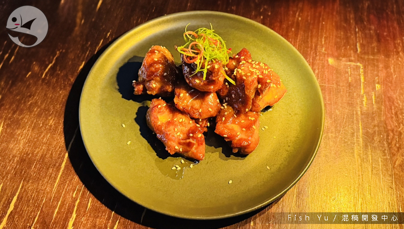 一個韓式醬料炸雞的概念,軟嫩大塊的的雞腿肉與酸甜的外皮相得益彰,值得一推的料理。