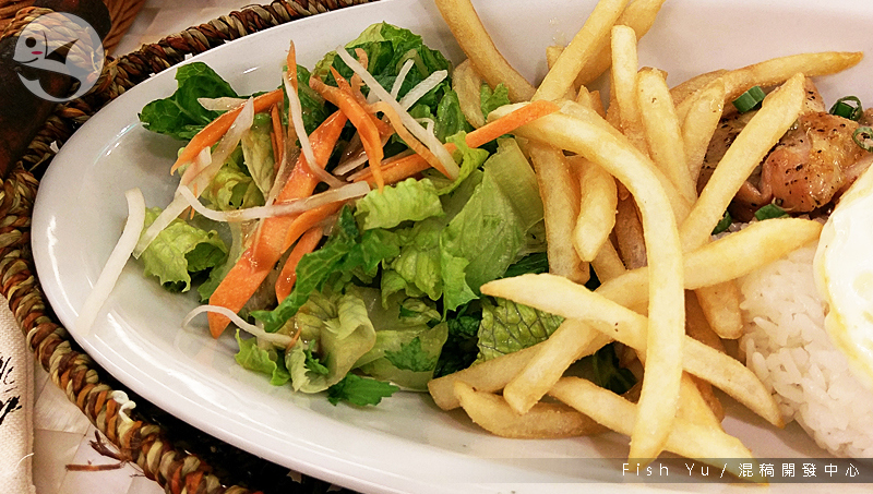 配菜的生菜 + 薯條普到不行,但半熟蛋和炙燒過的半熟鮭魚很OK,何況還加上了鮭魚卵,很不錯。