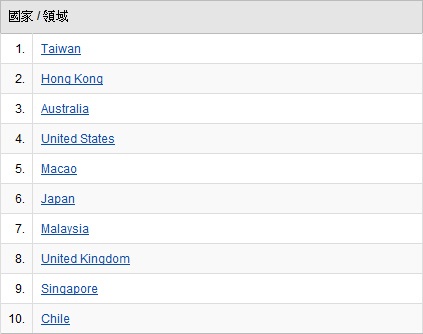 讓我比較疑惑的是第10名怎麼會冒出個智利(Chile)……?
