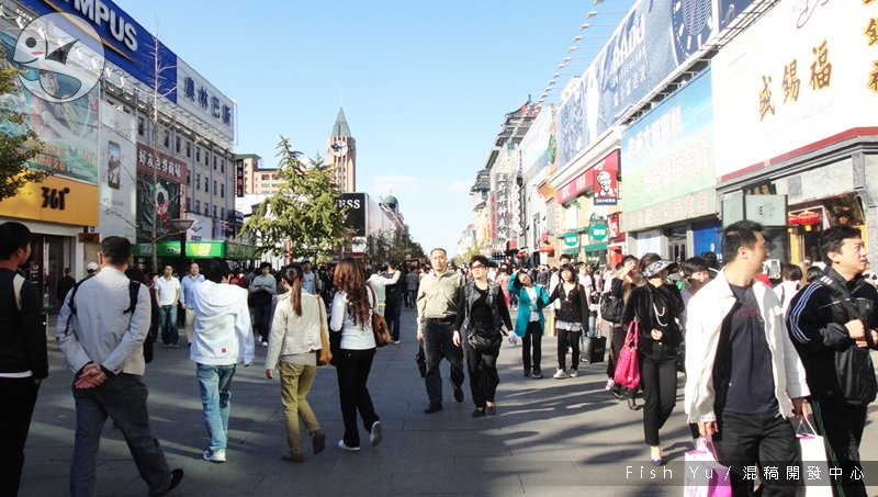 王府井大街是一個很寬廣的行人徒步區,包括各種店家,從時尚的到古早的皆有之,人潮頗擁擠。