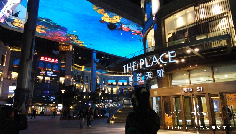 世貿天階就是個購物中心兼美食廣場的概念,不過裝設了一個超大型超霸氣的LED螢幕天花板,晚上來看真的是不錯。孰料準備打道回府的我們在這裡招了快40分鐘還招不到計程車,冏。