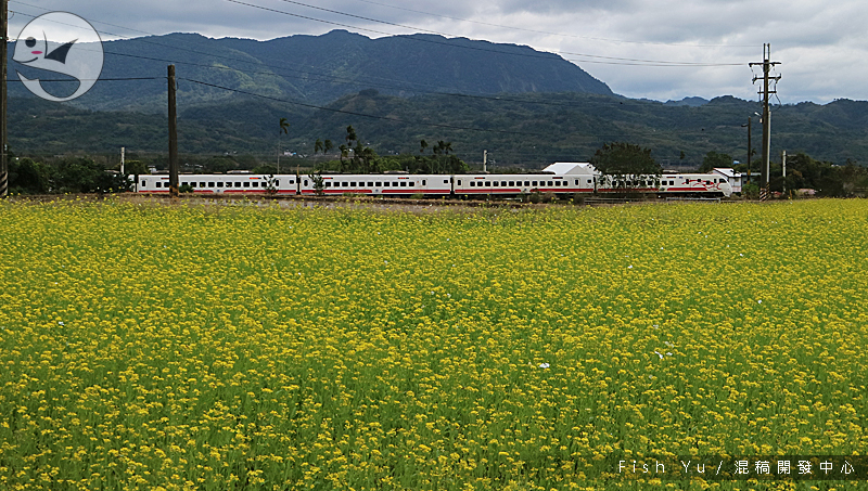完全只是剛好路過被整片的油菜花田吸引而下車,穿插在大片翠綠間的小小黃色花朵甚是可愛,遠處不時有火車駛過,還可以猜猜車種自娛。