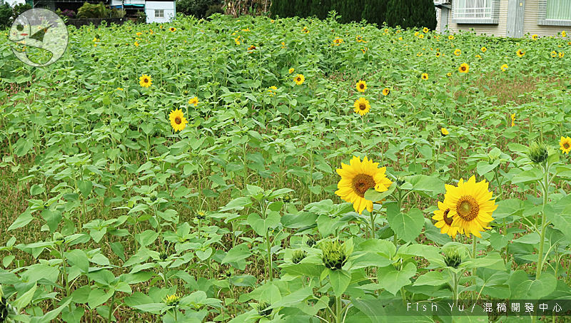 現在不是向日葵的花季,是以向日葵稀稀落落,長得也很矮。