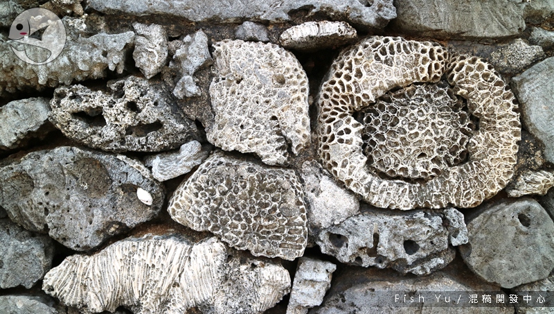 花宅聚落花不到半小時就能逛完,但維護完整,低矮的圍牆都就地使用礁石砌成,還看得出珊瑚礁的模樣。