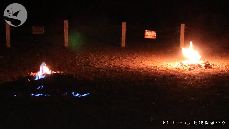 出火一直是晚上來看的景點(白天不明顯),雖說一路上完全沒有燈有點扯,還好手機都有手電筒功能可以照明,但還是很暗。當然不是要裝什麼很亮的大燈來破壞出火景觀,步道沿線裝地燈很難嗎。