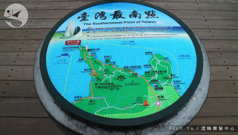 這裡是個新景點,去一個很小的平台看一個正面像竹筍側面像鞋底的造型碑,然後說這是台灣最南點。路上會經過一個有著綠色大足球的氣象站,我是覺得那顆大球還比較搶眼。