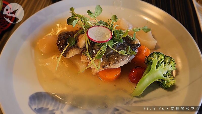 「所以我說那個醬汁呢?」真的有醬汁喔,醬汁不錯,鱸魚鮮美,只是份量少到有點傻眼。