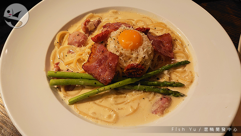 白醬滋味濃郁,用料也挺豐盛,培根頗具厚度,最重要的是有半熟蛋就無敵!