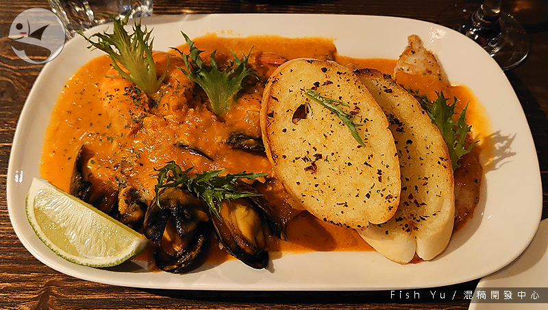 海鮮很多樣挺好吃,還附有現烤的酥脆大蒜麵包可以搭配醬汁食用,更貼飽足感。